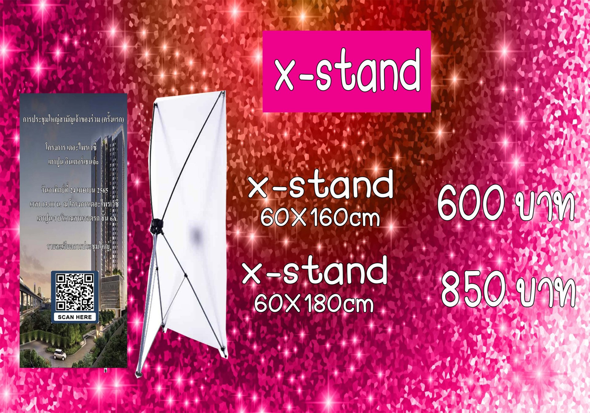 คือ ป้ายโฆษณาแบบพกพาที่มีขาตั้งลักษณะเป็นรูปตัว X ทำจากวัสดุแข็งแรง น้ำหนักเบา พกพาสะดวก ติดตั้งง่าย และถอดประกอบได้ ใช้สำหรับแสดงภาพโฆษณา โปรโมชั่นสินค้า หรือข้อมูลต่างๆ นิยมใช้ในงานแสดงสินค้า ออกบูธ อีเวนต์ หรือการโปรโมตในร้านค้า ทั้งในร่มและนอกร่ม